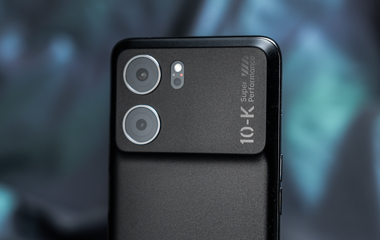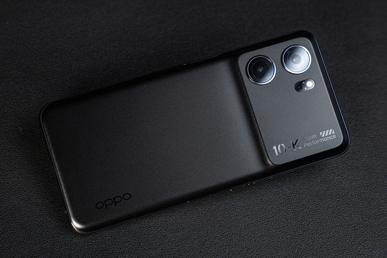 OPPO K10首发包括暗夜黑、冰魄蓝两种配色,我们拿到的是前者。暗夜黑版本背面通体哑光磨砂质感,不仅视感看得舒服,同时也不容易沾染指纹。背盖上传承了K9系列的硬核ICON风格:立体的10-K字符、“Super Performance”字符、赛道纹理设计,与去年的K9系列可谓一脉相承,给人十足的硬核感和辨识度。
