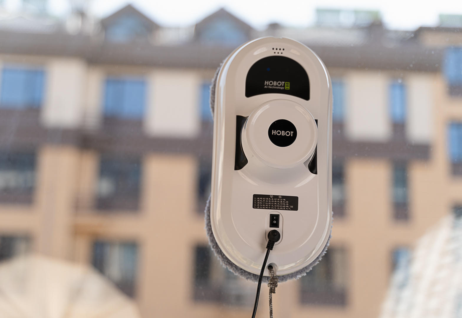 吸真空的原理所限,玻妞188必须连接电源使用,机身运行要绑缚安全绳和电源线拖着两根线工作...