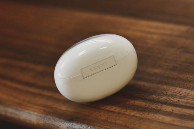 打开收纳仓,取出耳机,可以看到收纳仓部分有较为细微的贴心设计,OPPO通过优化的人体工学,设计出了收纳仓全新的微笑曲线,耳机露出相比其他传统无线耳机来说会更多,拿取更为轻松,而开合之间微妙的“微笑”曲线也显得比较有人情味。