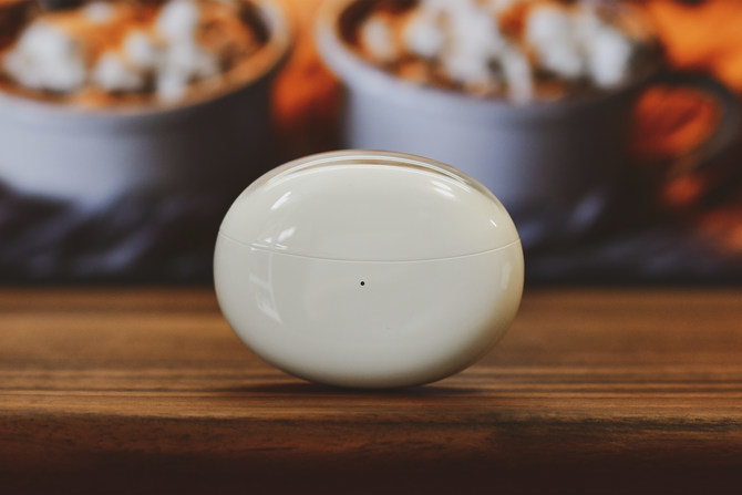 拿到耳机,首先我们先来看下充电盒的部分。本次OPPO Enco Air2 Pro真无线降噪耳机拥有「月牙白」、「破晓灰」两种配色,而我们这次拿到的则是「月牙白」,其采用了双层透明气泡仓设计,造型较为圆润。