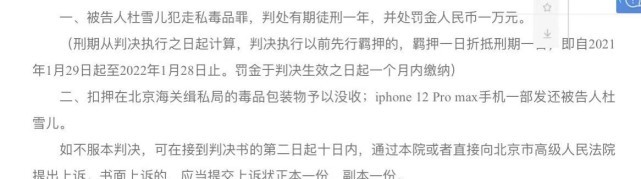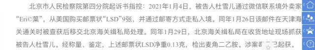 据判决书显示,去年年初,杜雪儿联系了境外卖家购买du 品,并通过邮寄方式走私入境。不久后,该邮件被有关部门查获,并在收货现场抓捕了杜雪儿。