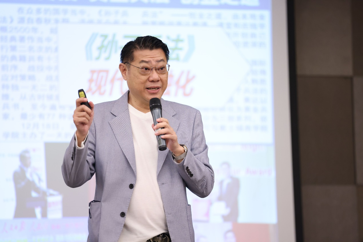 本次论坛特邀中国CCTV国家宝藏节目《孙子兵法》守护人韩胜宝先生发表演说,他研究《孙子兵法》多年,走访过世界77个国家,研究和总结《孙子兵法》。他认为,《孙子兵法》能够发展至今,被翻译成多国文字,在世界拥有数亿粉丝,其主要原因是,《孙子兵法》已经不再是单纯的军事类书籍,而是一本能够运用在商业上的奇书。他强调《孙子兵法》所阐述的,是一种“不败”的和谐,百战不殆的“殆”恰恰指的是一种“立于不败”的境界,如何善用企业资源,如何用正与奇的观点去看待未来企业发展,《孙子兵法》给出了很好的答案。