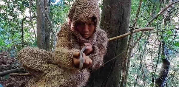 挑战期间带极少但是大多数人被麻雀喳喳吸引的肯定是她没穿衣服进荒野的这个争议 当她走进荒野的第一件事我想应该是制作衣服还没走多久她的身体就被荆棘划伤了,她用了芦苇草做了一套草裙 毛茸茸的很蓬松