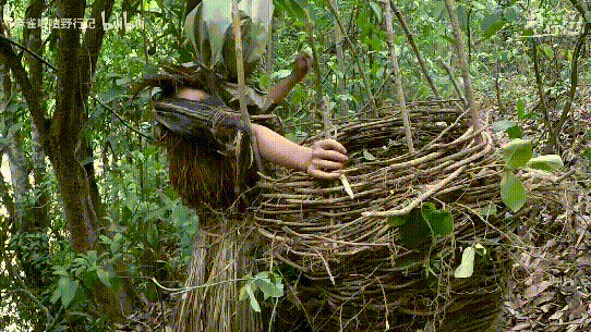 说完了吃的问题接下来肯定就是住宿的问题了 因为很有可能会面临下雨这种未知的恶劣天气她先寻找适合搭建住宿的地方 然后用树木棍作为搭建的主要固定物然后用藤条作为捆绑工具 一切搭建好之后肯定需要把顶遮盖起来她又找到很多干茅草铺上厚厚一层作为遮挡雨水 这就不得不佩服麻雀喳喳的知识储备量和她的动手能力。