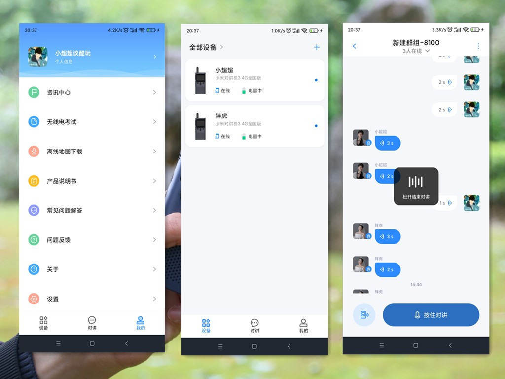 管理设置方面,对讲机上面可以添加成员、查询对讲记录等等设置,不过它还有一个APP,我们可以从APP上管理群组内的对讲机设备,除此之外手机也能变成对讲机与群组内的对讲机完成实时语音对讲,这个功能算是比较有意思的,每一个设备讲的语音都能从APP上查阅的到,设备的在线状态、电量信息都能从APP上查看。