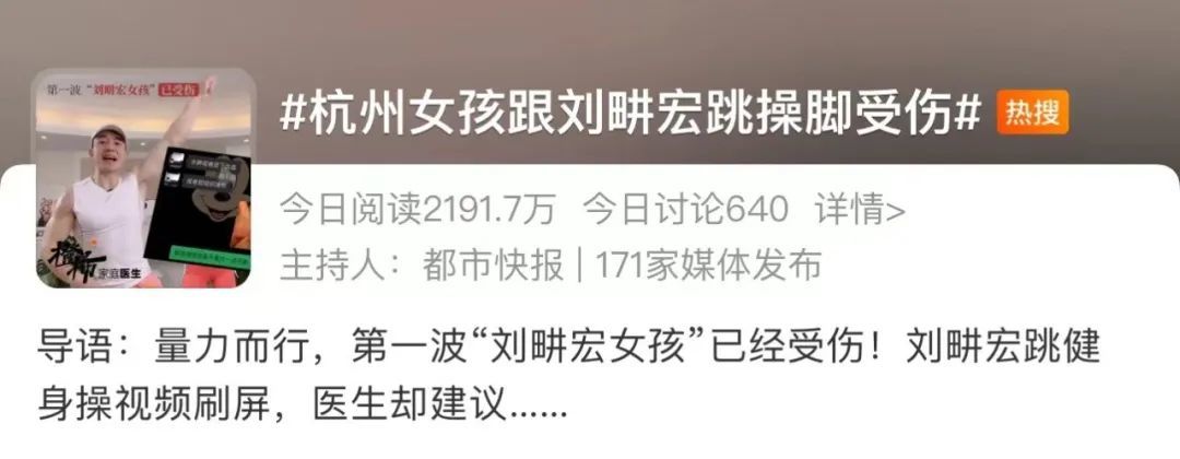 面对“第一波刘畊宏女孩受伤”、“男朋友练刘畊宏被抬走“、“刘畊宏燃脂操别乱练”等等受伤话题,即便兢兢业业的刘教练本人反复强调“量力而行”、“动作标准”,甚至给每一位“学员”批作业指导,也架不住热情高涨的广大网友忽略了标准和安全。