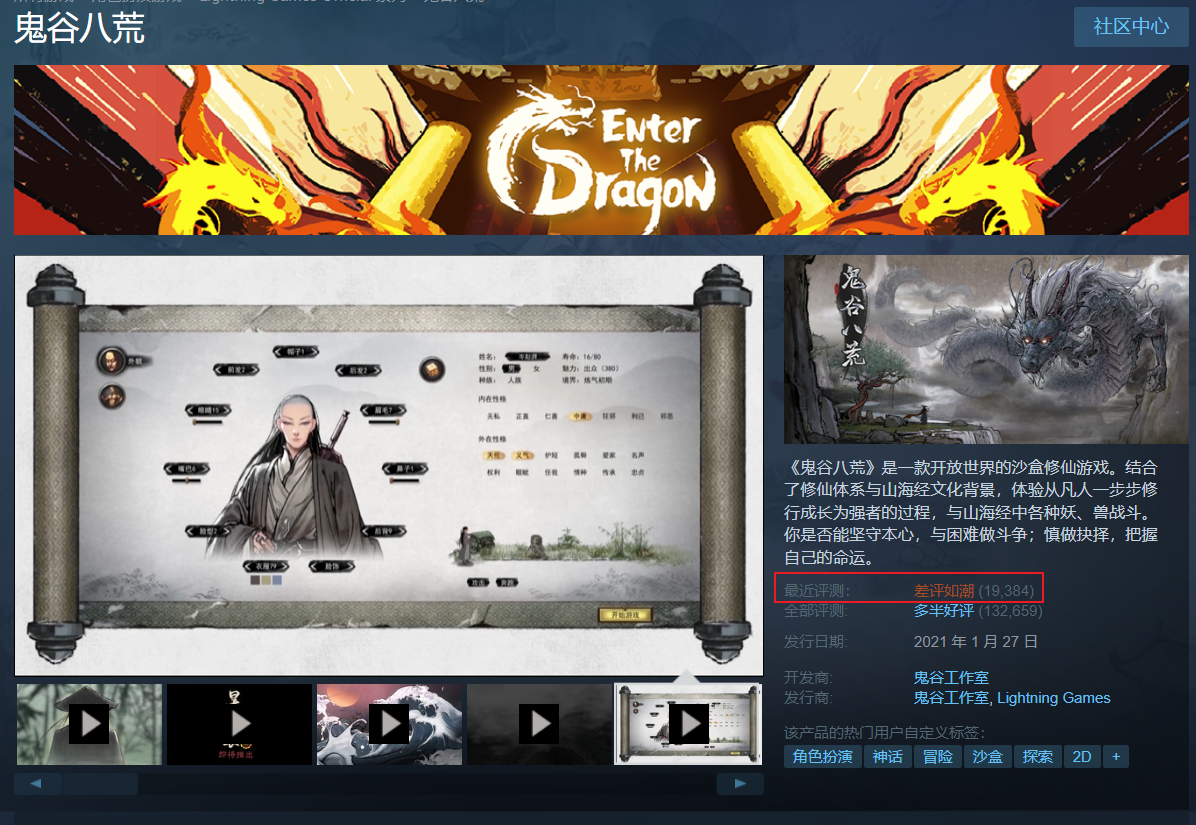 目前,《鬼谷八荒》在 Steam 的近期评价为“差评如潮”,玩家们纷纷将怒火投在了评价中。