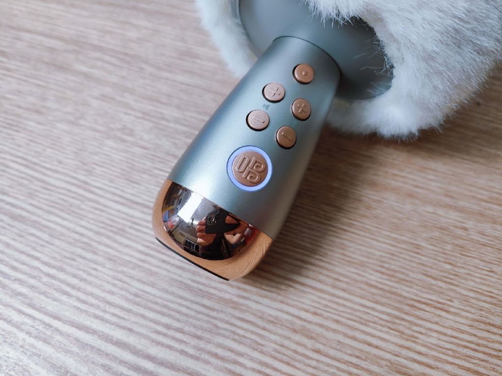 麦克风采用传统手柄式的设计,功能操作集于手柄一面,可单手完成麦克风各项功能的操控,诸如音量的调节、音效切换、无线连麦、开关机等等。