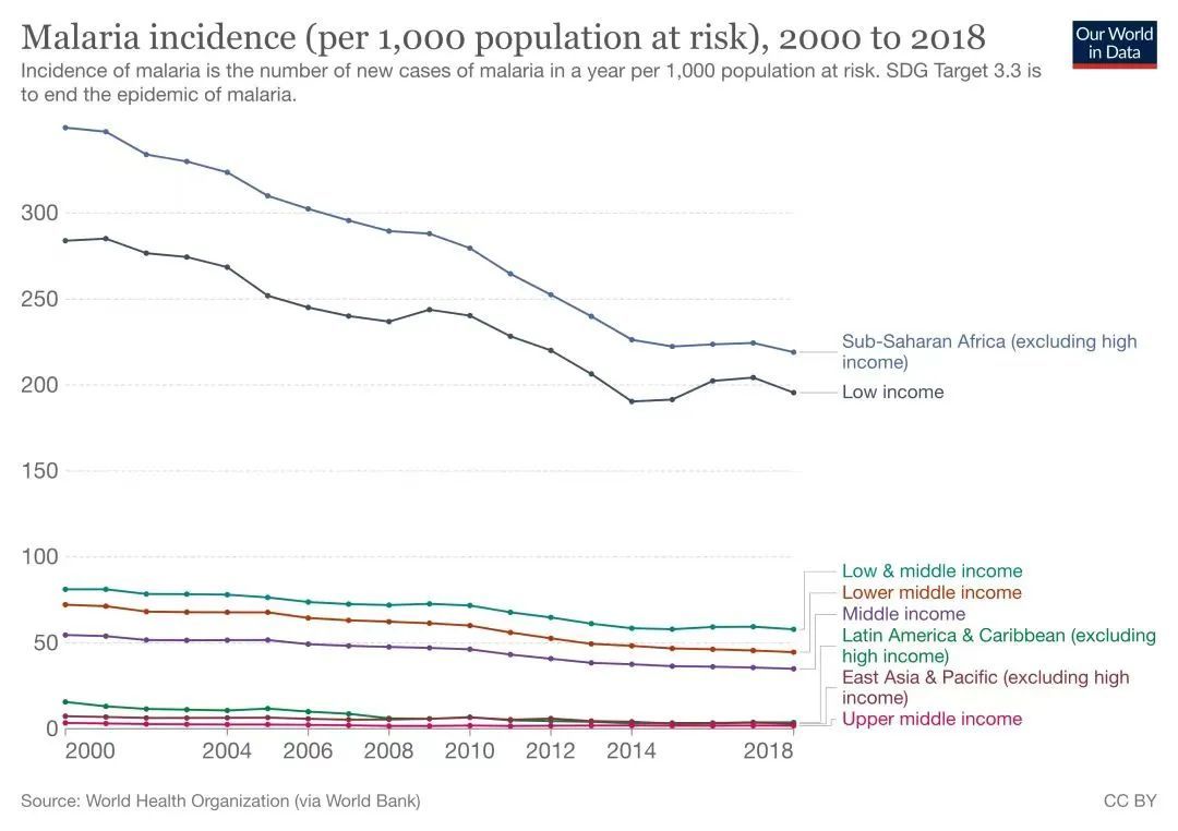 ■ 不同收入国家的疟疾发病率 / our world in data
