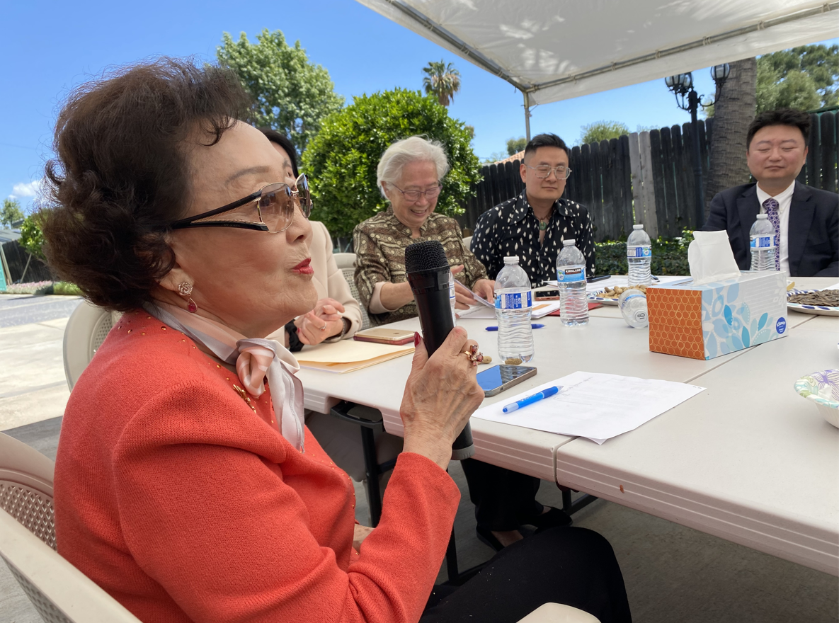 最后,由令人敬仰的美国南加州联合会创会会长、美国南加州北京联谊会发起人张素久大姐总结讲话,她首先介绍了两会的起源和历史演变,澄清了许多鲜为人知的真实过程。
