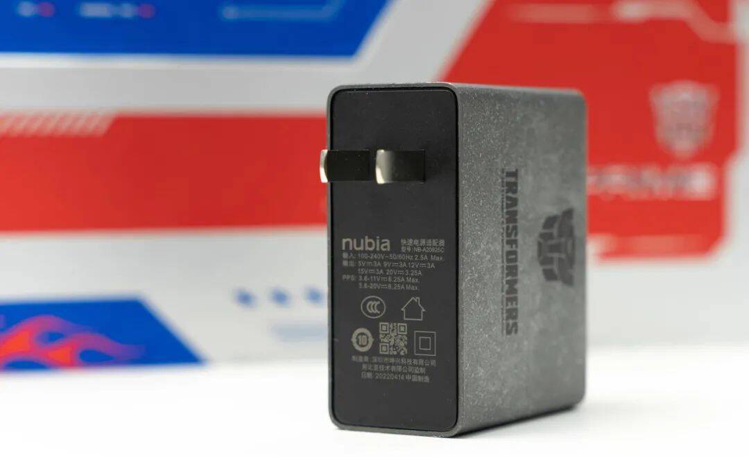 而且它附带的这枚定制充电头也是非常强大,在它的支持下,红魔 7 Pro 擎天柱限量典藏版能支持最高 135W 的快充。