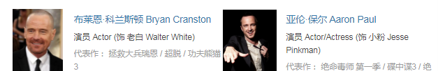 虽然,他们目前暂时还未在《风骚律师》最终季中登场,但已经有平台,迫不及待把“老白”扮演者布莱恩·科兰斯顿和“小粉”扮演者亚伦·保尔的资料放进《风骚律师》最终季的演员表中了。