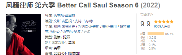 《风骚律师》最终季,评分都冲到9.9分了,你值得拥有。