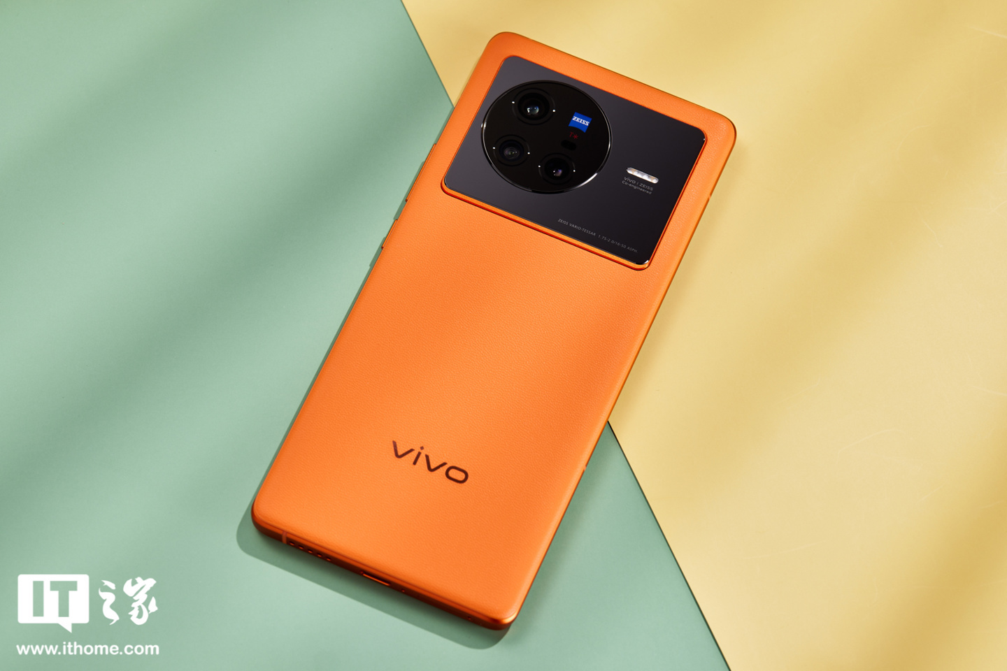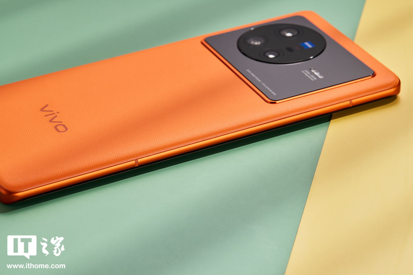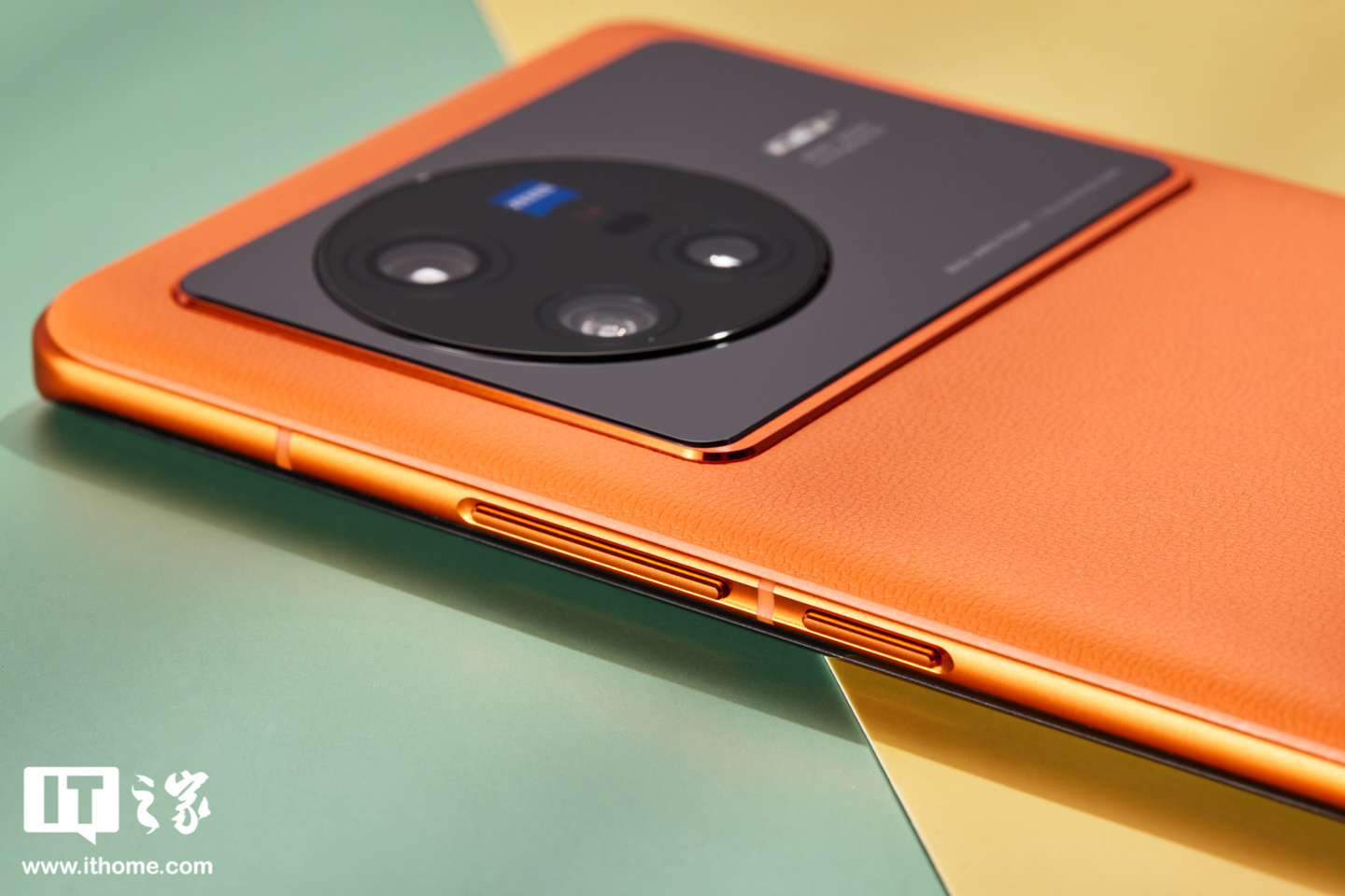 再说 vivo X80 的“旅程”配色,其实就是橙色,这个橙色在色泽上相当饱满,带来张扬的视觉观感,看起来很摩登时尚。同时,vivo X80 机身背面采用素皮材质,细腻舒适的肌理表面也提升了手机整体质感。