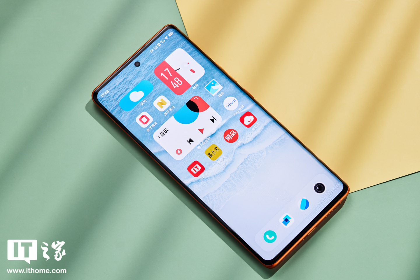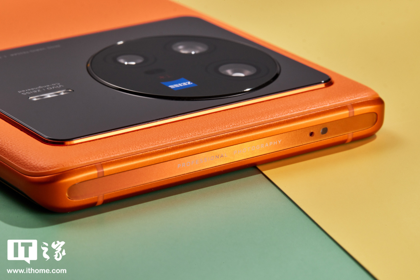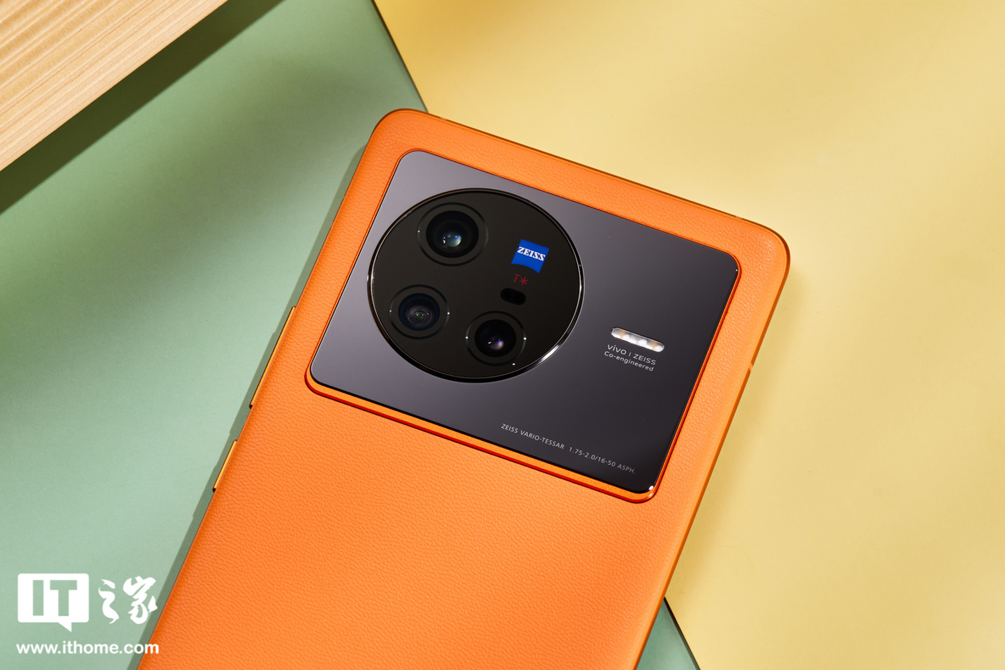 再说 vivo X80 的“旅程”配色,其实就是橙色,这个橙色在色泽上相当饱满,带来张扬的视觉观感,看起来很摩登时尚。同时,vivo X80 机身背面采用素皮材质,细腻舒适的肌理表面也提升了手机整体质感。