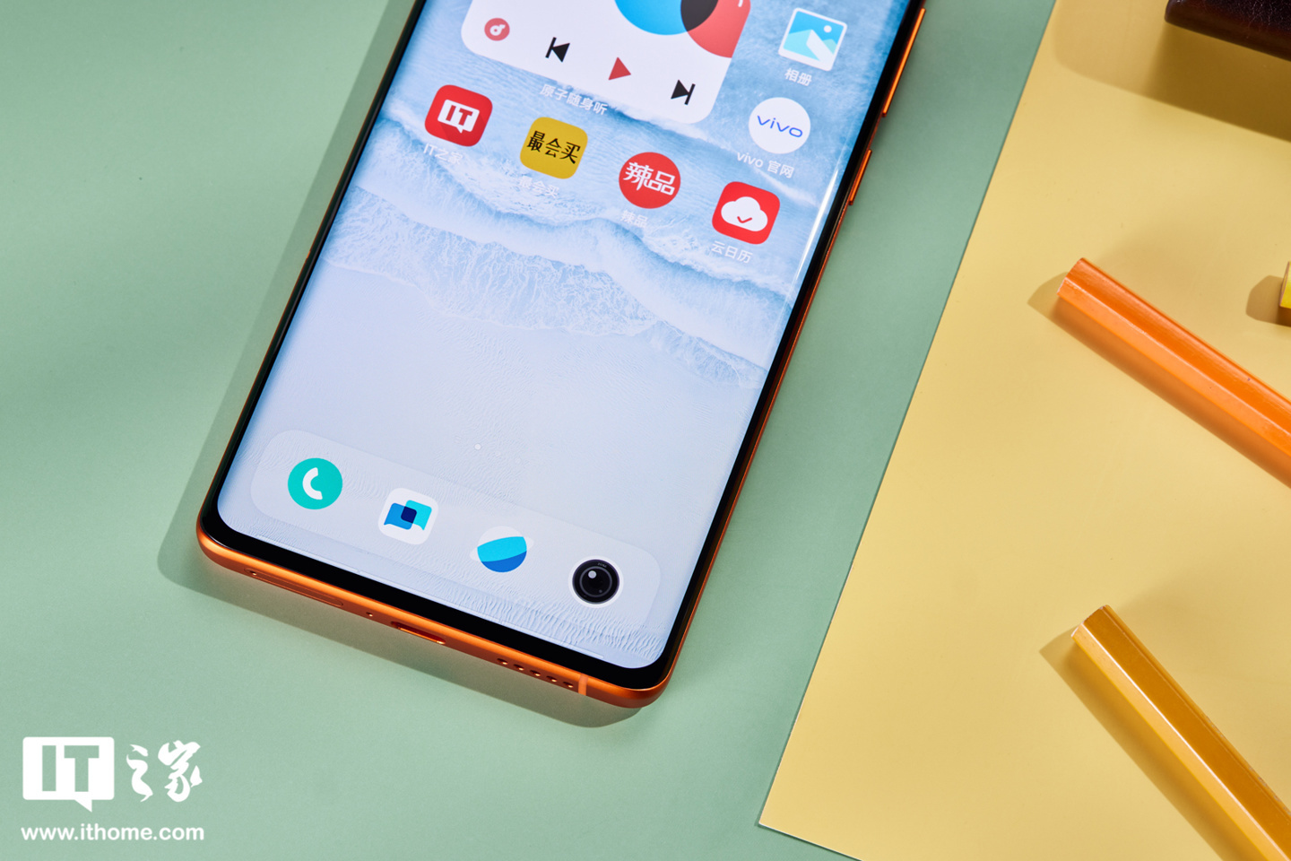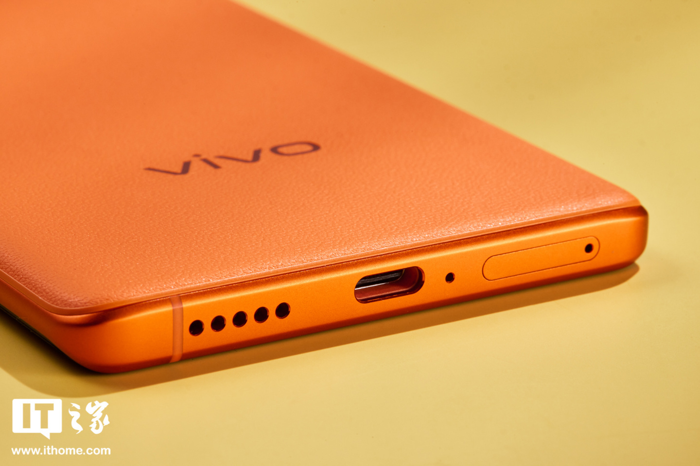 中框方面,vivo X80 拥有金属中框,中框表面也被做成了雾面的橙色,此外机身右侧为音量键和电源键,左侧无任何按键,机身顶部为通话麦克风和红外线传感器,机身底部为 SIM 卡槽、降噪麦克风、USB 接口以及扬声器开孔。