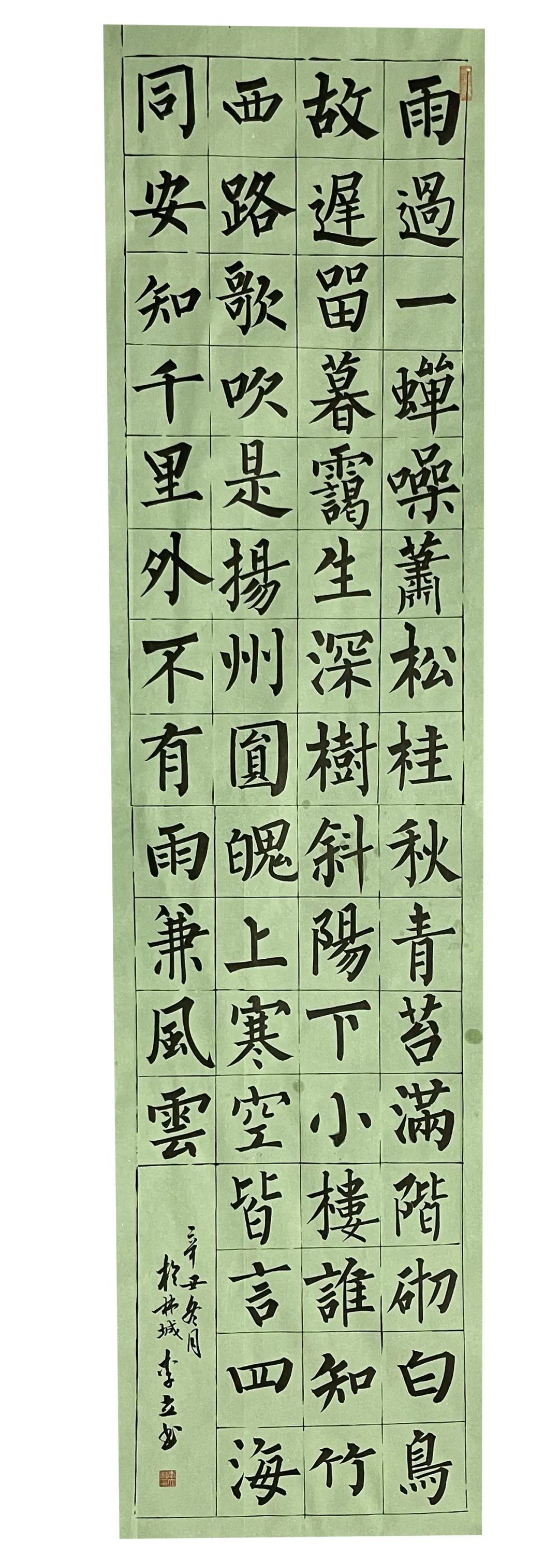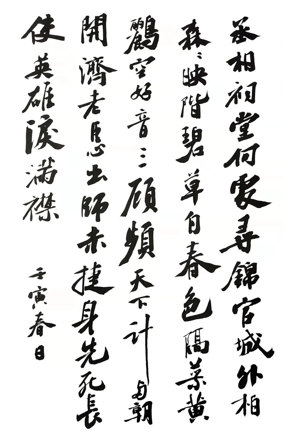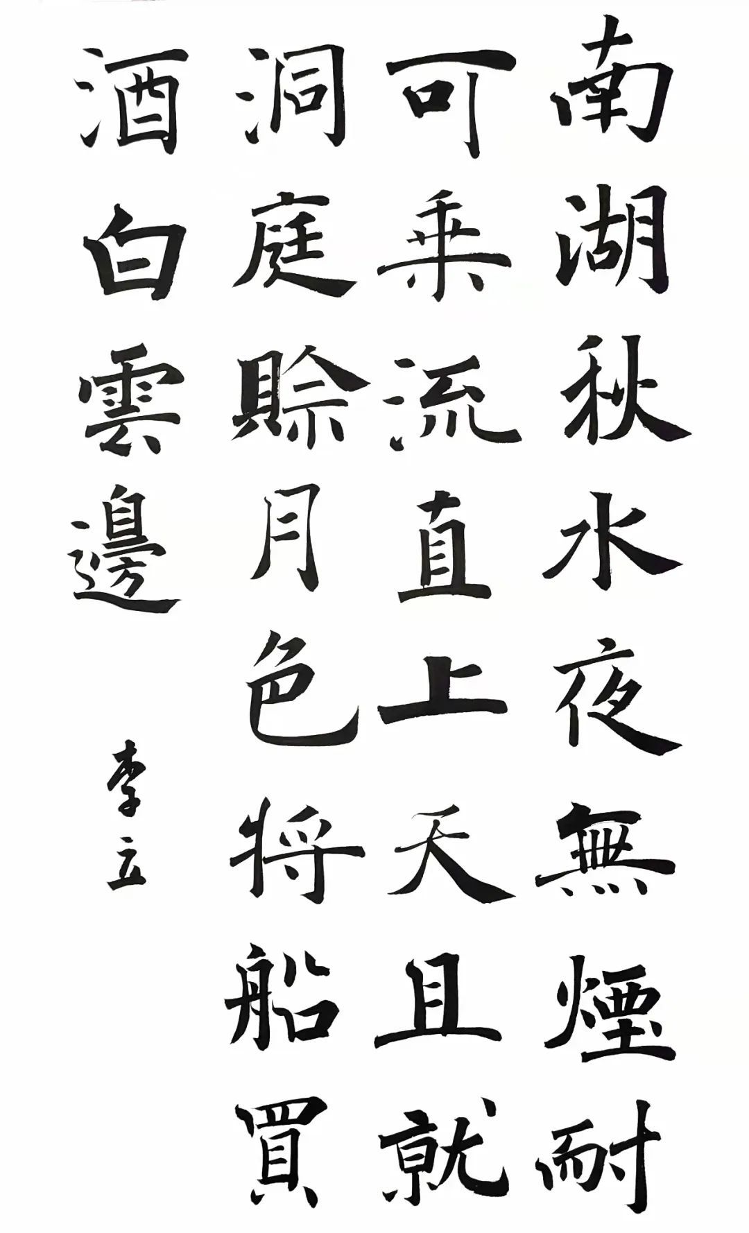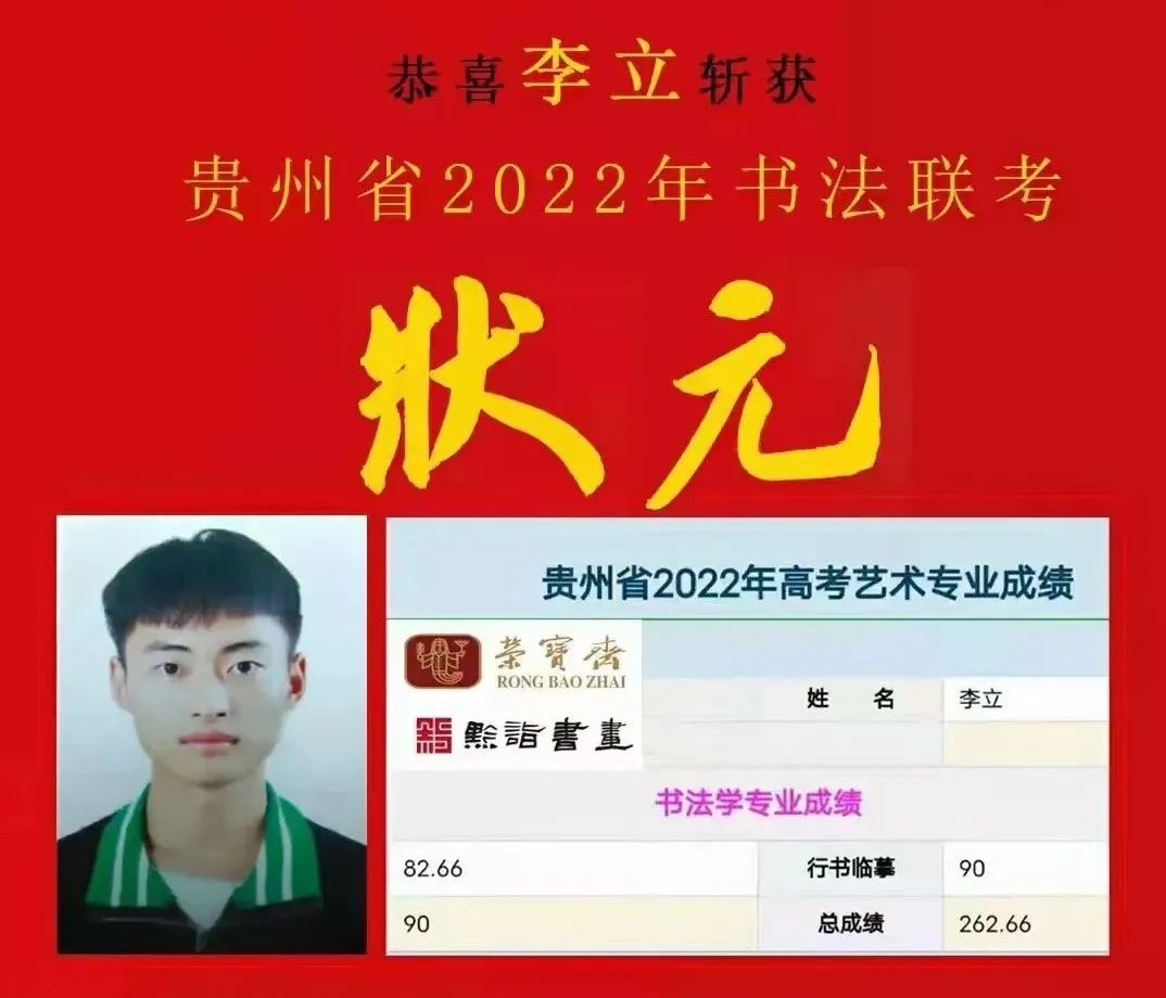 李立,彝族,2003年2月出生于盘州。初中时,受语文老师李鸿引导初入学书之道。时年幼,不精学,故无所成。时年十六,就读于六盘水市第一实验中学,得良师汪甜甜教之,幸甚至哉。尝深遁书法之事,恩师性情淑均,教学之事倾心之至,日夜反复,故余虽愚,然则有所获,眼界大开。岁至庚子末(2020),受吾汪师之情,拜师未堂(段朱勇)学习高考书法专项。虽只得段师皮毛之技,也取全省20名之佳绩。然则不以学业为重,不知文化之要。浑噩六月,终得落榜之苦果。愚以为命当如此,遂思以军报国之事,愿持钢枪镇守边疆。段师以为不该如此,数说余复以习之。遂反筑城黔诣书法学堂,潜心修学。壬寅初春,终得善果,报余以状元,以答数月之辛劳。黔诣书法学堂奖余万金以鞭策,余当奋发图强,让学堂诸师不失所望。如他日学有所成,有幸步入大学之府,当拜谢李、汪、段之师!