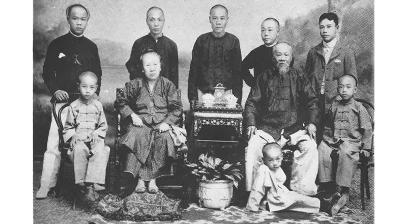 全家福中,伍连德剪去辫子。