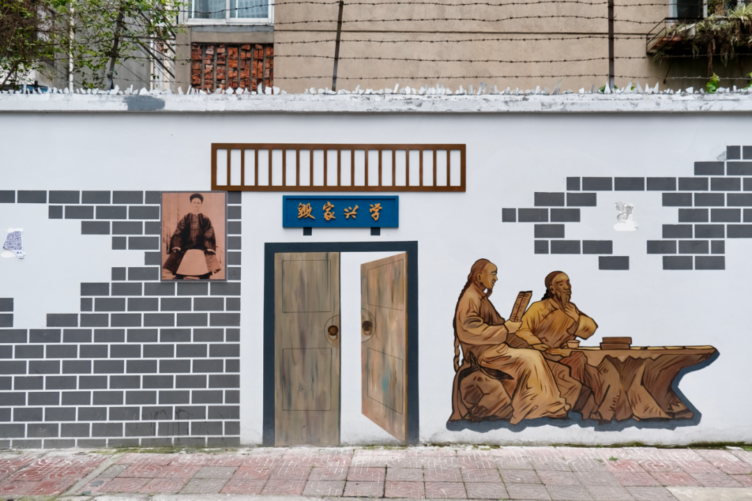 清末时,大福建营巷是条死巷,1905年,嘉定府里的几位士绅在西玉龙街开设“嘉定府中学堂”,当时的举人吴天成被推荐出任校长,学校规模宏大,凑不够桌椅板凳,为了办学,吴天成变卖祖业,人称“毁家兴学”,四川总督堂还颁赠了匾。