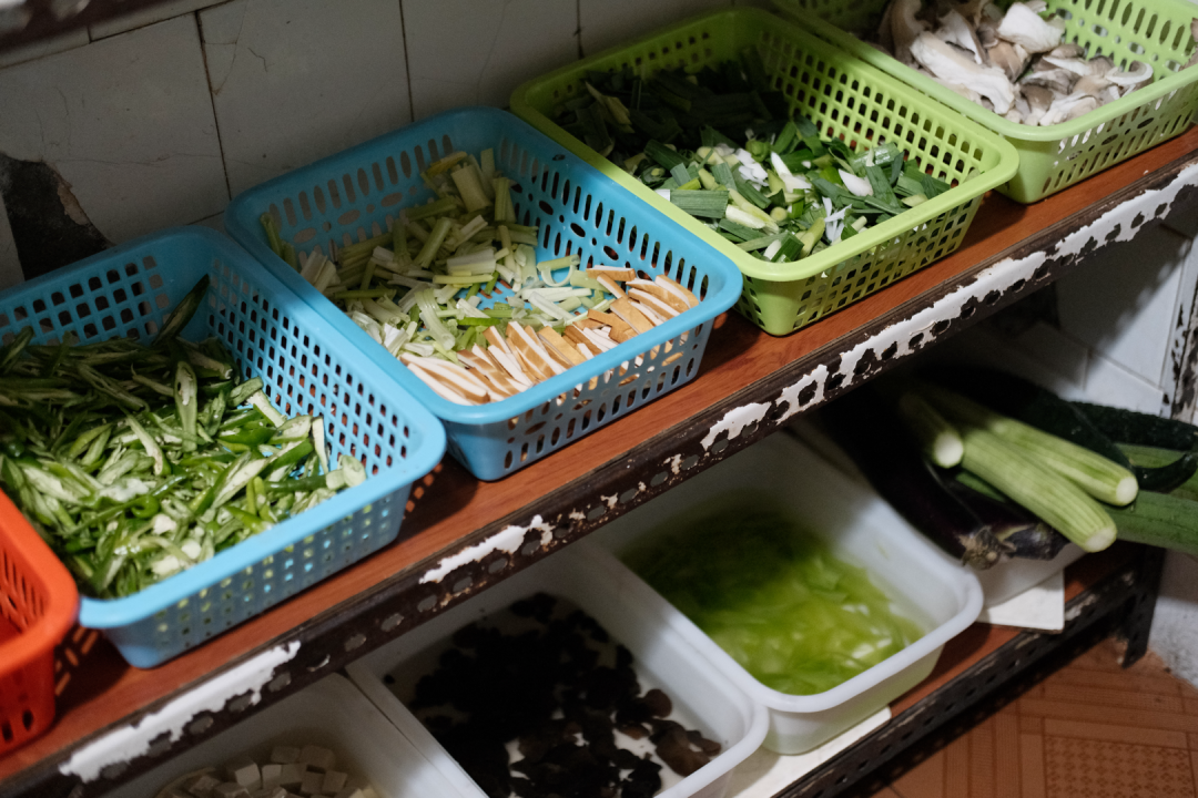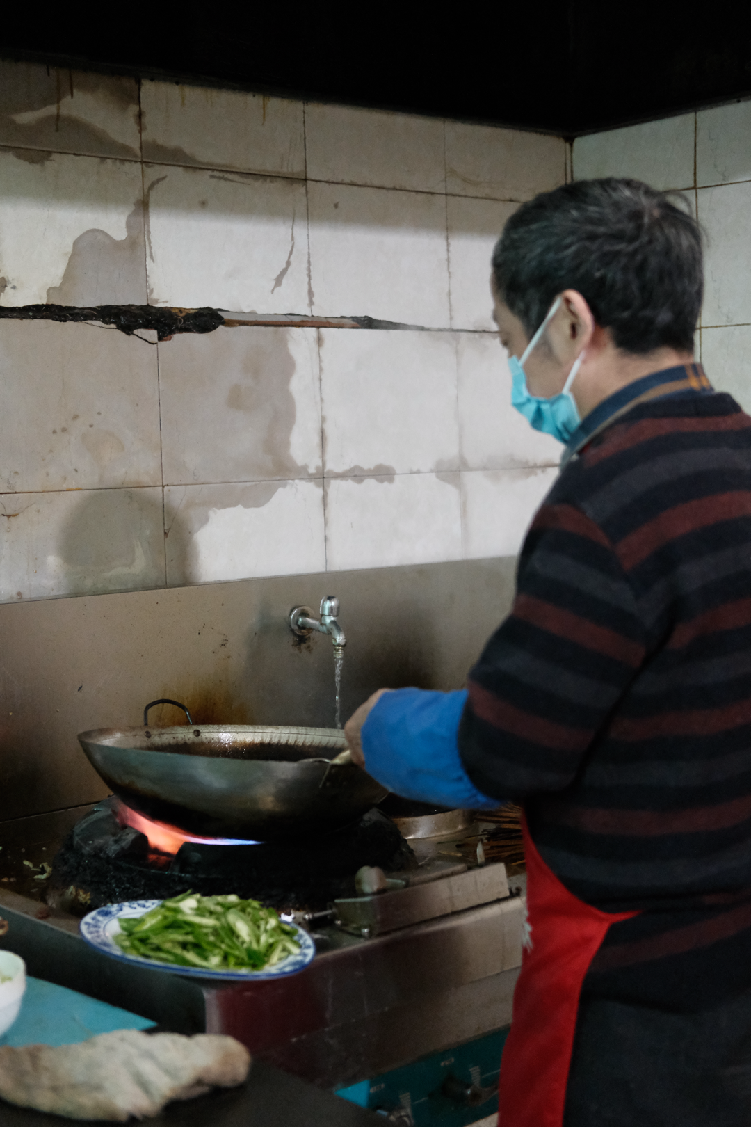 包老板卖过冒菜、蒸菜、火锅、包子馒头稀饭,最后什么都会了,改成了家常小炒。饭店没有菜单,人们走进后厨,看菜点菜,可以素炒、可以炒肉、也可以是大菜,老板什么都做。