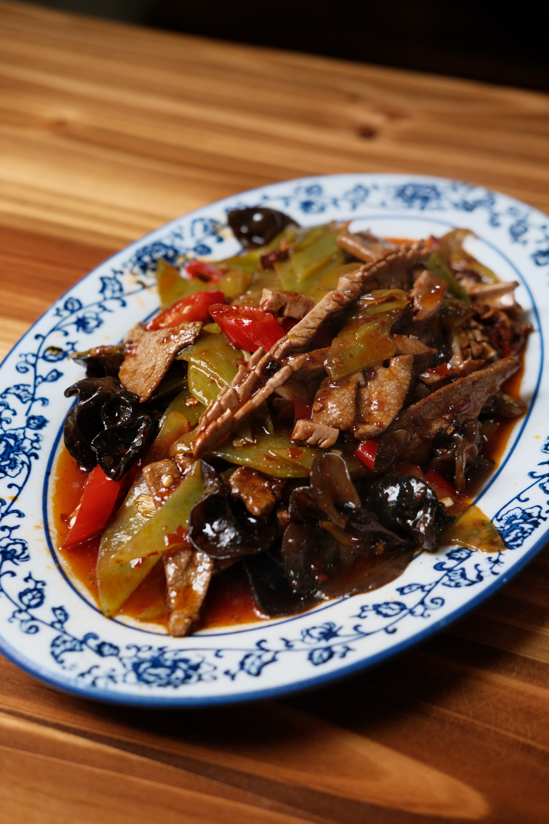 味道是家常味,没有特别大的油气和味精,比如回锅肉,肉片是炒成干巴巴的。