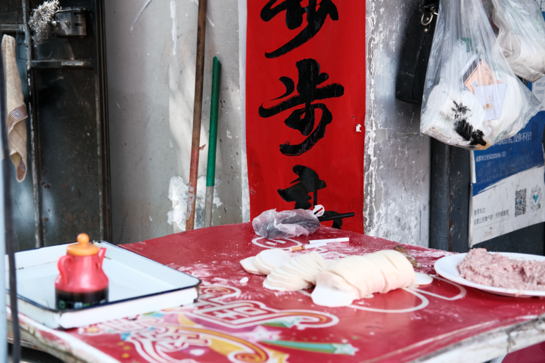 家属院三单元一楼是张饺子的作坊,内外联通靠无线电对讲机,因为疫情原因室内不能坐,不然生意更好。