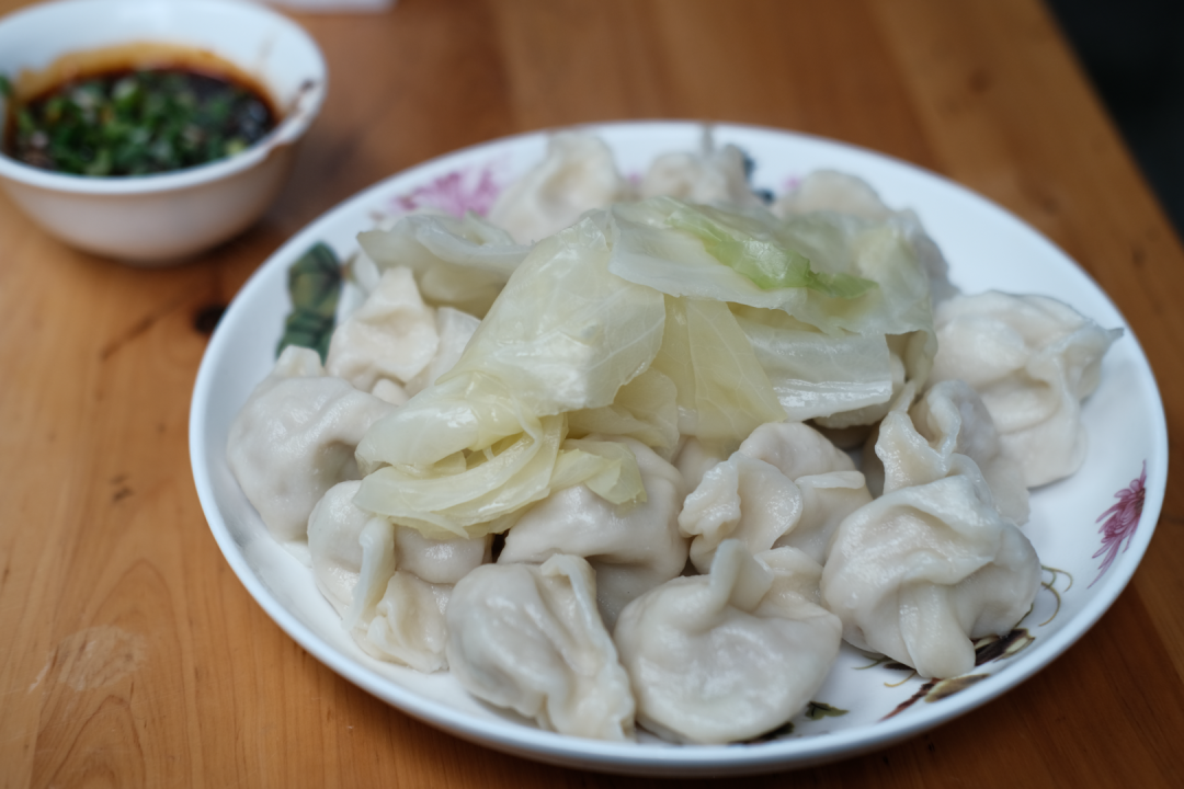 张姐的蘸碟调得一绝,似乎是加了甜面酱和辣椒油,味道浓厚中有一丝甜。饺子馅不是煮软煮烂那种,我吃的白菜馅,咬下去沙沙响。除此之外还有芹菜韭菜鲜肉馅。