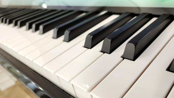 除了尺寸大,50英寸屏幕还支持4K画质,实际观看效果清晰细腻,而且长时间弹奏还可防护视力。当你需要返回、确认、HOME等导航操作时,根据屏幕中功能点找到对应的实体黑色琴键按下即可。但需要注意的是大屏并不支持触控,这么设计的原因是使用琴键可更精准的操作从而减少大屏误触,同时还完全杜绝了触摸对屏幕造成的指纹污染,另一方面也可避免因为手触而频繁打断弹琴节奏。