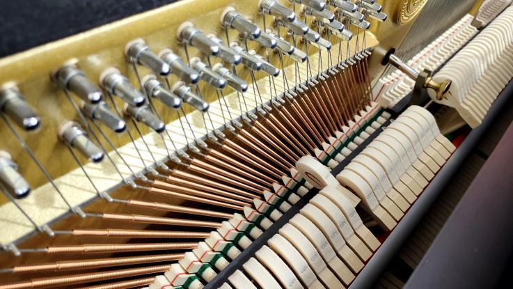 既然拥有传统的机械基因,那UF双模钢琴用料也响当当。比如经过准确计算应力分布而设计出来且能承载20吨琴弦张力的弦板、德国Roslau罗斯劳琴弦、阿尔卑斯山云杉不等厚实木复合音板、碳纤维击弦机发明者Kevin Burke亲自操刀的FIND击弦机、欧洲进口羊毛毡榔头等等,多种匠心机械机构糅合国际艺术级技术,UF双模钢琴为了精品音质可谓不惜一切。