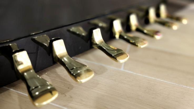了解的人都知道钢琴一般都有三个踏板,用于控制钢琴的音量、音色和延音等。而UF双模钢琴却拥有7个踏板,从形态上来说这也是超出传统钢琴的一个体现。多出的这些踏板在使用时可通过脚踩,实现曲谱翻页、快进播放、调节速度等操作,避免了弹奏时需要手动翻页琴谱而中断的情形,从而保持双手始终在琴键上更流畅的弹奏。这个体验也让我感到意外,但恍然大悟之后又不得不称赞这种细节心思。
