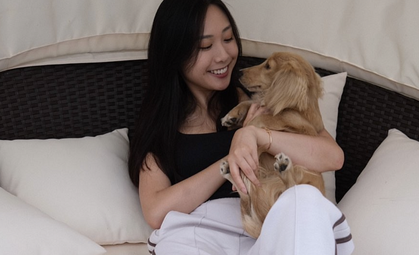 不得不说作为星二代出身的她外形条件的确不错,笑起来时还拥有妈妈李丽珍同款小梨涡,怀抱小狗亲密对视互动,笑容甜美而有感染力。