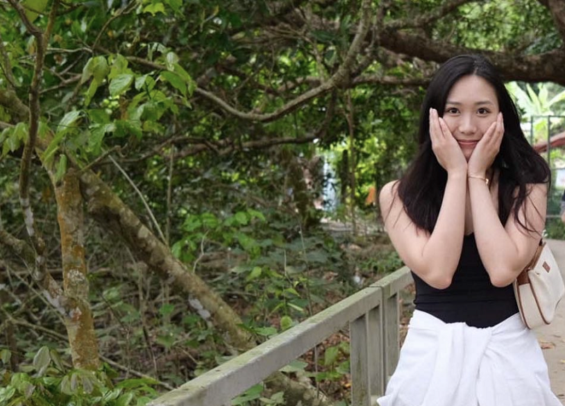 今年24岁的许倚榕正值青春,对镜捂住脸颊微笑,搭配一头披肩长发尽显少女般的羞涩与清纯,颇具邻家妹妹的既视感。而一双大大眼睛更是增添一丝灵动,挎上小提包,走在小道上,看起来很是惬意。