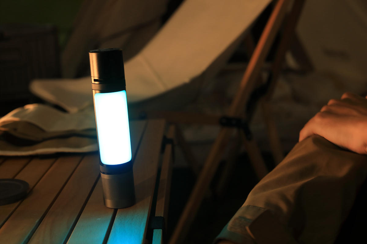 跟朋友一起在户外露营时,我们通常会用手机直接外放或是连接便携小音箱,放一些音乐来活跃气氛,但也仅仅只是声音上的活跃,对于现在大家特别看中的“氛围感”却没有烘托出来。而当我们将手机蓝牙跟这款纳拓12合1雷鸣音乐手电连接后,它变身成为一台无线音箱,不仅能够播放出音质不输百元音箱,而且还跟随着音乐的节奏进行炫彩变换,让我们能够看到音乐的律动,直接将氛围感拉满,在充满一次电量后,可实现最长14小时的音乐播放,完全不担心电量问题。