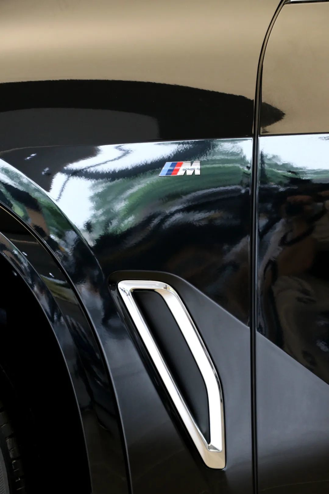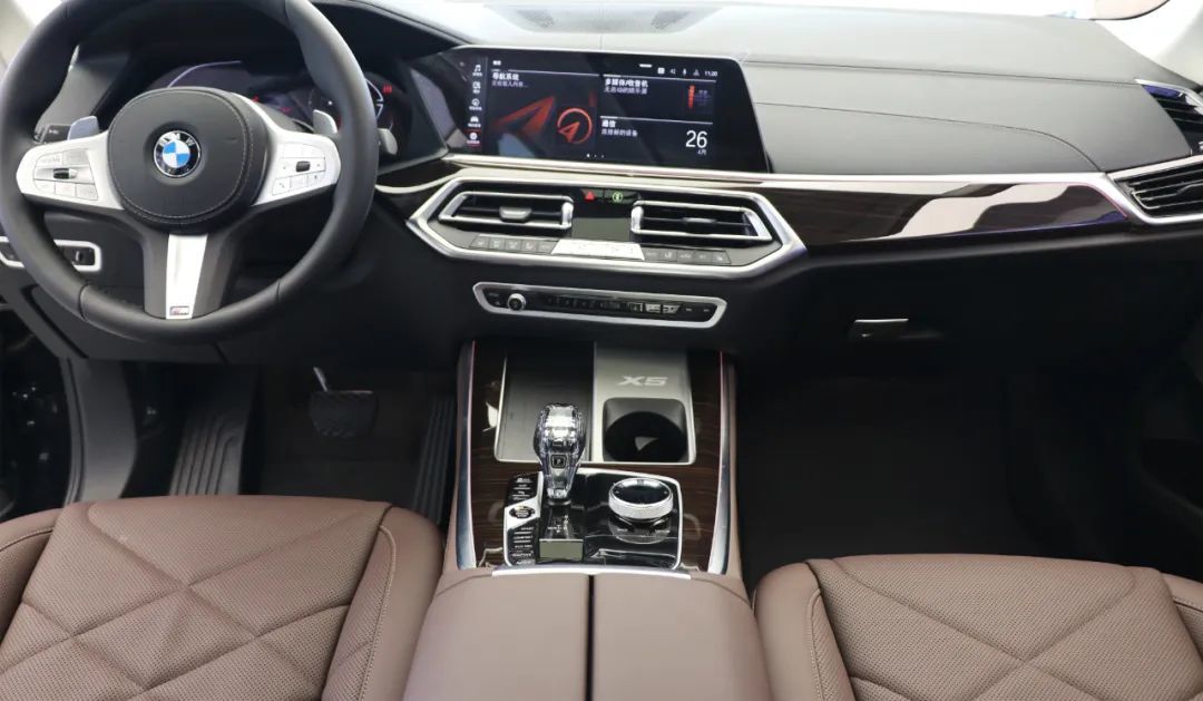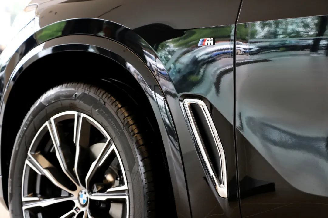 国产X5和进口版在外观、内饰的设计语言上并没有很大不同,整体颜值依旧很能打。前脸下方新增加了“L”型镀铬饰条,这一点很像海外M50i车型的设计。