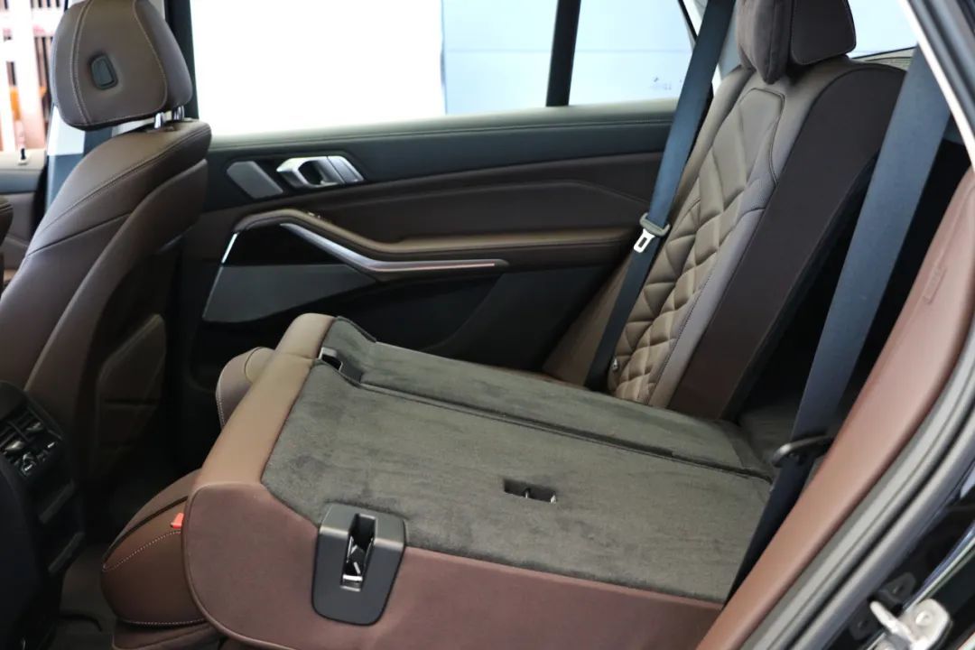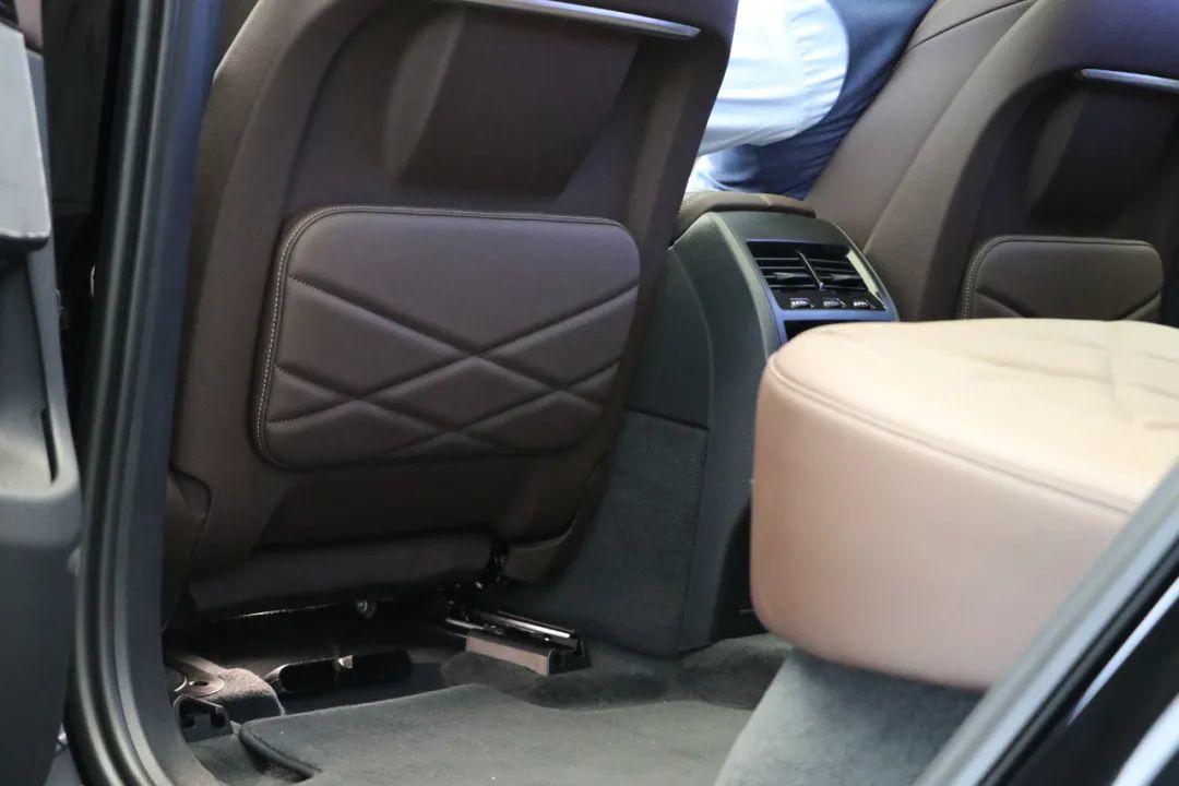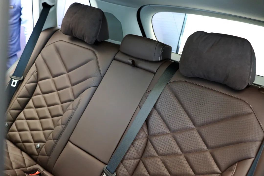 为了给中国消费者带来更好的体验,国产X5的后排座椅靠背倾倒角度增至31度,同时配备软头枕,完完全全保证后排的舒适。前排座椅椅背上的这个软垫设计是为了避免后排乘客磕碰到前方,不过我感觉如果可以打开放东西就更好了。