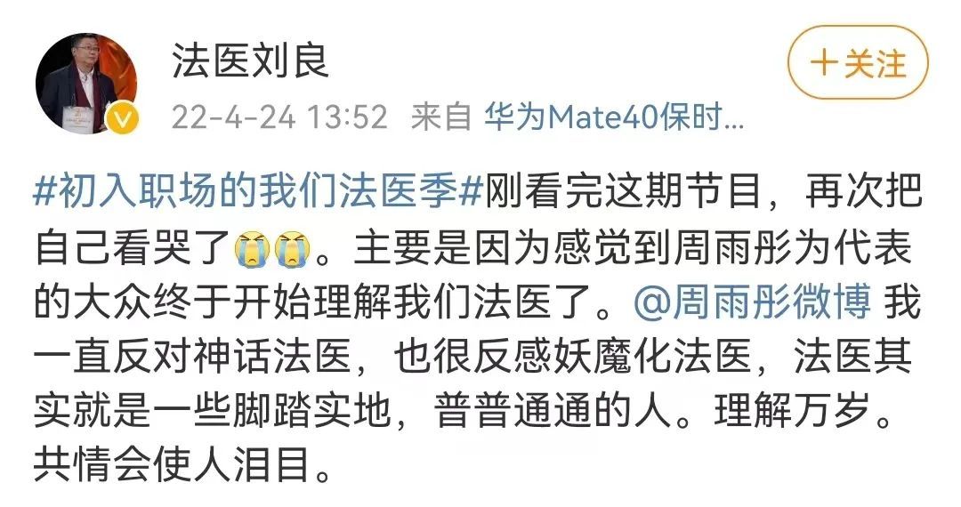 在最新一期节目中,周雨彤的一番感想,让法医大拿刘良现场破防。
