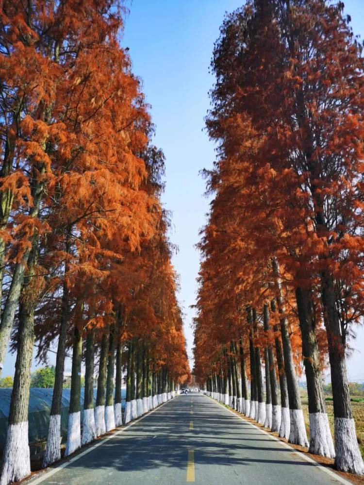 老艺术家也聊过位于韶关始兴县的“中国最美乡村公路”,就位于车八岭自然保护区,横亘在公路两边、延绵22公里的落羽杉褪去最后一丝碧绿妆容,随着季节变幻,从金黄换装成红色、深红色,一路飘红,在当中骑行、自驾都倍感心旷神怡。