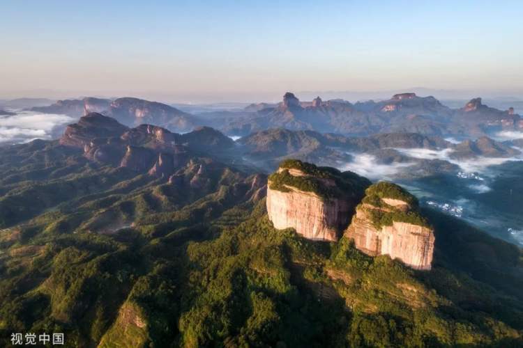 最为人熟知的丹霞山,以奇险壮丽为名,拥有世界最典型、类型最齐全、造型最丰富的丹霞地貌,被称为中国的“红石公园”。