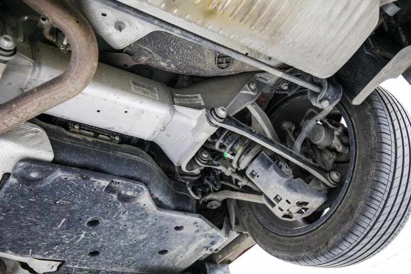 标致508L采用了五连杆独立后悬架,在同级别产品中是出类拔萃的存在。更多的连杆意味着可以对车轮进行更多方向的控制。如五连杆独立后悬,就可以实现对车轮6个方向的自由度控制,让轮胎紧贴地面,带来更快更高效的车身动态响应。有趣的是,标致508L后悬架左右两边各有一根倾斜角度非常大的拉杆,不仅样子唬人,实际功能上更有效保证了车辆在急弯等复杂路况中的车身平衡。