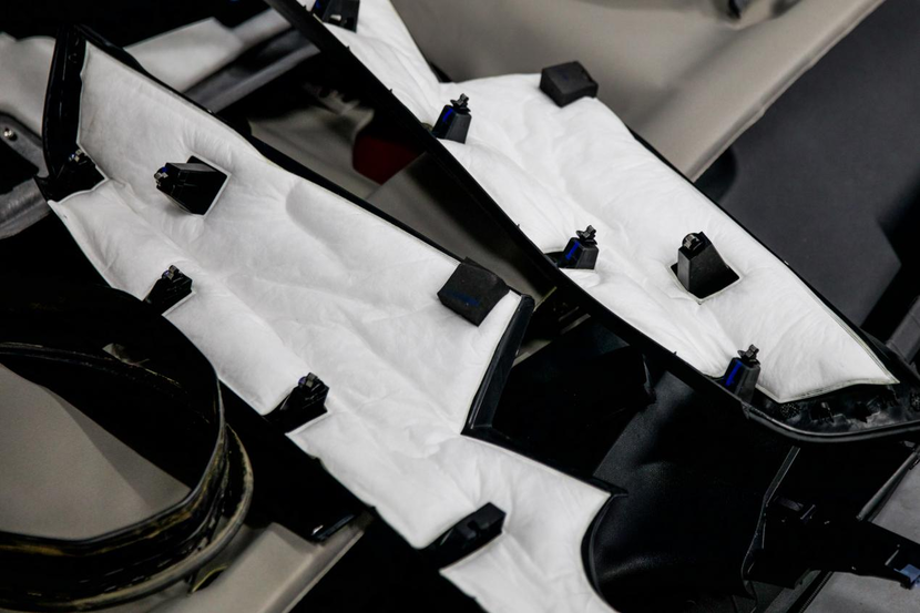 改装组在抛减车身钣金的时候,发现了十分厚重、质地纯白的隔音用料。为了营造更健康优质的座舱体验,标致508L采用了系统化、全方位的绿色材料设计体系,使用了大面积环保材料。例如仪表板、门护板等采用进口环保搪塑表皮材料,皮革材料全部采用环保水性涂饰剂,做到了绿色、环保,符合国际上最严苛的环保法规。此外,前排双层隔音玻璃、24块密封型膨胀片等大量高性能的吸音材料和降噪设计,也进一步让噪声得到有效过滤和阻隔。标致508L的整车的隔音措施多达111处,对品质的恪守可见一斑。
