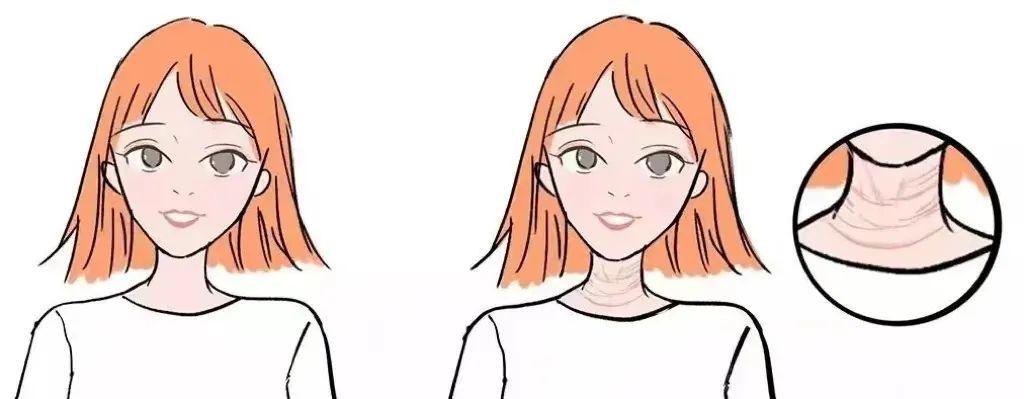 颈部皮肤皮脂腺没有面部那么发达,不彻底清洁很容易堆积在皮肤里形成褶皱,加深颈纹。