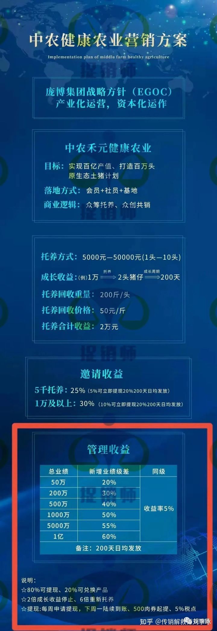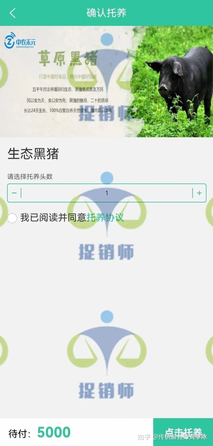 近日,反传销普法网:捉销师注意到中农禾元(北京)科技发展有限公司推出了一个名叫“百万头原生态黑猪养殖计划”的项目。