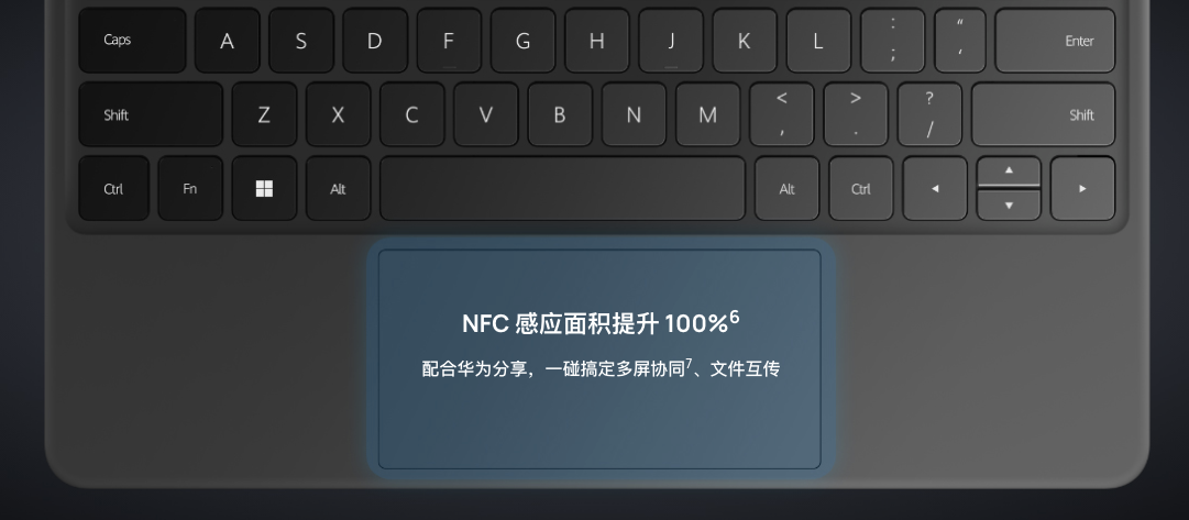 “悦滑键盘”背光灯支持逐阶点亮,还具备更大的触控板与 NFC 感应面积、复合纯碳纤维板材质等优势特性,交互体验更高效便捷,丝滑触感让办公生产力翻倍,即使没有鼠标,也能自由畅快操作电脑。
