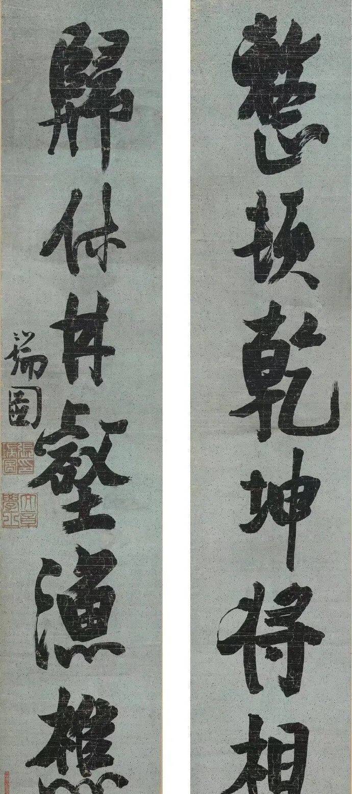 张瑞图的大字作品,坊间高清大图并不多见。我们搜集到这幅大字对联,最能凸显其声势迫人之气,特此分享给大家——