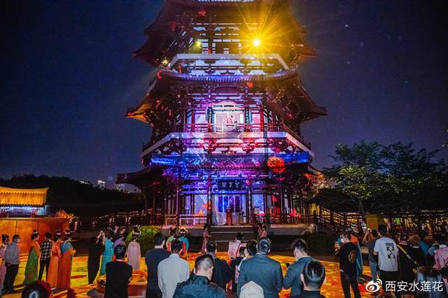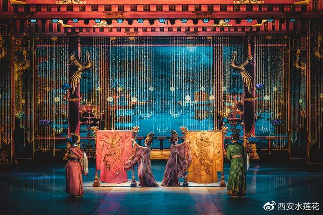 大唐芙蓉园超时空唐乐舞剧《梦回大唐》黄金版作为礼赞新时代的又一恢宏巨制,由陈维亚、韩春启、赵季平、孟可组合的顶级大师天团班底倾力创作,为观众讲述了一位现代姑娘“梦儿”穿越时空寻找千年之爱的圆梦历程,从战争、市井、歌舞、婚礼、海上丝绸之路等多个维度为观众深度演绎了一个千回百转,充满幻想的盛世大唐。