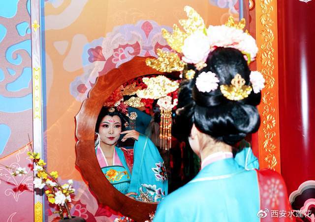 你见过画中人走进现实吗?你想一步迈进胡汉聚集的长安酒肆吗?....现在机会来啦,4月30日大唐芙蓉园《寻梦·芙蓉里》震撼首演。现场通过芙蓉庭院、芙蓉衣肆、芙蓉画坊、芙蓉酒肆四大场景的构建,从妆容、服饰、礼仪的外部表征和具有深意的故事内核,将盛唐女性文化以一场趣味横生的芙蓉宴会完美呈现,隐秘生动的“芙蓉代面”、沉浸式的趣味空间、戏剧性的探索体验,带领游客开启通往盛唐的“寻梦”隧道。