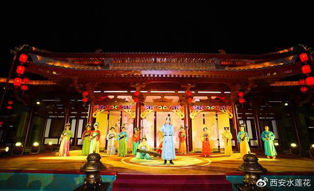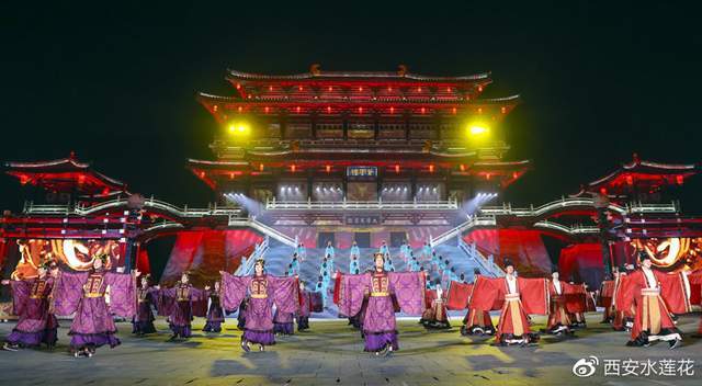 园区超时空唐乐舞剧《梦回大唐》黄金版、水舞光影秀《大唐追梦》,唐代宫廷燕乐《鼓》三大保留剧目邀你体味青年、中年、暮年人生必不可少的三大自然阶段的多重境界。