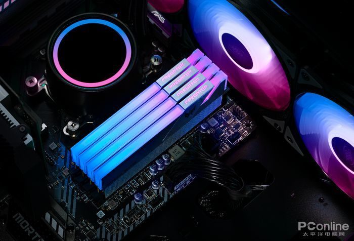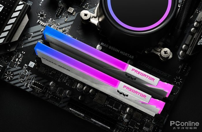 而在外观设计方面,Vesta炫光星舰可谓是完美展现了宏碁掠夺者作为高端电竞品牌的实力。Predator Vesta拥有一套散外观炫酷,且散热表现优异的散热装甲。散热装甲采用了铝合金材质,并辅以凹槽设计来提升空气对流性,散热效率更高,内存超频稳定性大幅提升。此外,宏碁掠夺者还对产品的RGB灯效进行了全新设计,采用了亮度更高、色彩更纯净的RGB灯珠,以及导光效果更柔和、自然的灯带,能够搭配出更有高级感的RGB氛围。