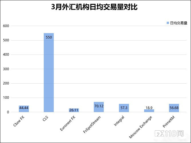 3月份的现货交易日均交易量达到5500亿美元,与2月份相比增长了7%,而与去年同期相比,增长了13%。