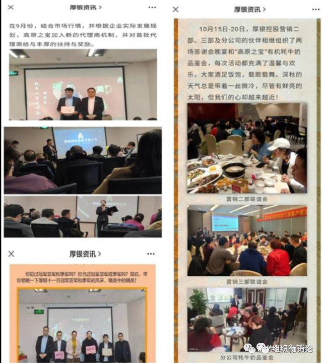 “10月15日-20日,厚银控股营销二部、三部及分公司的伙伴相继组织了两场答谢会晚宴和“高原之宝”有机牦牛奶品鉴会,每次活动都充满了温馨与欢乐,大家酒足饭饱,载歌载舞。”